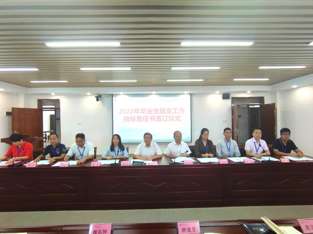 会议举行了2022届毕业生就业工作目标责任书签订仪式,表彰了就业指导工作先进集体和先进个人。党委书记黄圣诚作了讲话,党委副书记、副董事长胡思虎作就业工作报告,党委副书记、副董事长肖海主持。
