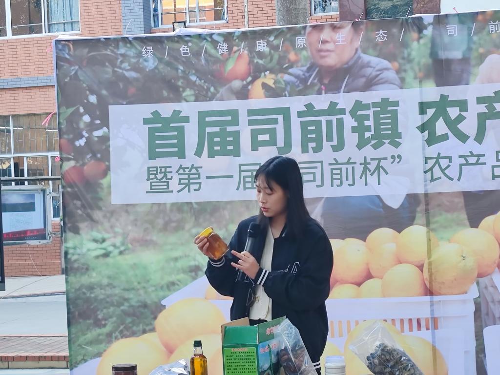 司前镇工作人员展示特色农副产品