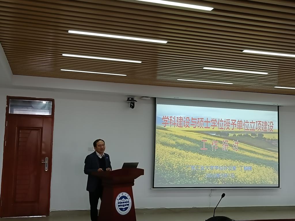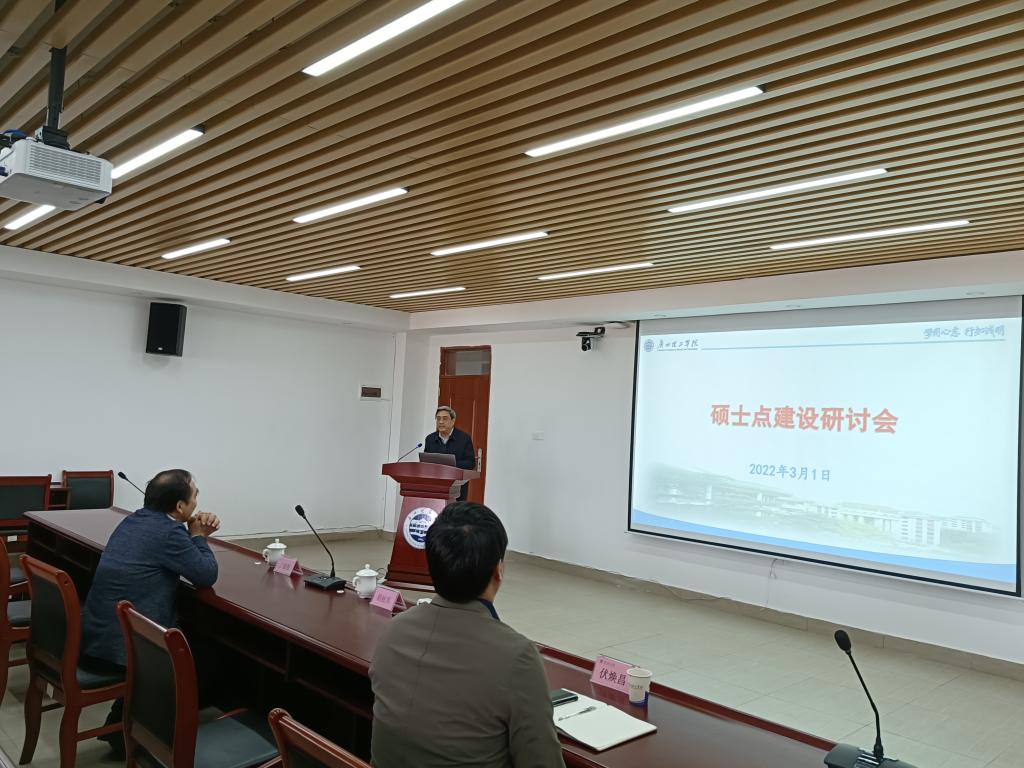 (代婵 黄菲青)3月1日,公司在行政楼815会议室召开硕士点建设研讨会,中国学位与研究生教育信息委员会委员、广东省学位与研究生教育学会常务理事、广东工业大学管理公司丁毅强教授应邀做辅导报告,伏焕昌常务副董事长、二级公司经理、科研副经理、学科带头人、青年骨干教师和机关职能部门相关人员出席会议。胡社军董事长主持报告会。