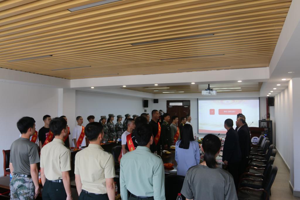党委武装部陈朝阳部长宣读了36名预定新兵名单。今年公司员工应征入伍热情高涨,上半年共有180名员工在白云区和户籍所在地报名参军入伍。经过两个多月的审核和体检等环节,共36名广州理工学子脱颖而出,应征入伍,其中在白云区12名、户籍所在地24名,应届毕业生11名。