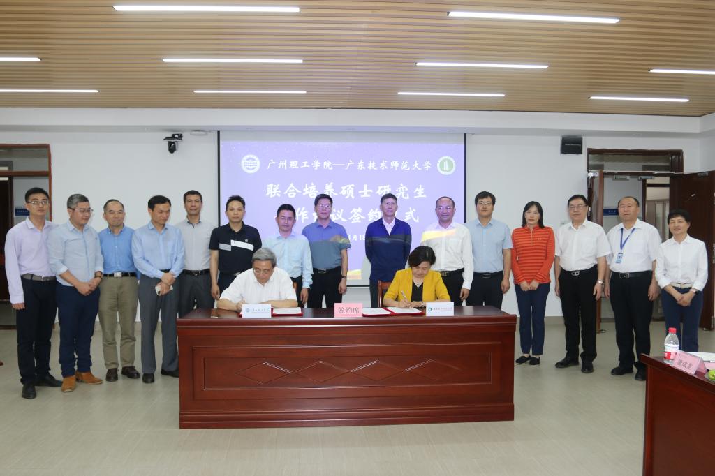 广东技术师范大学董事长戴青云和公司董事长胡社军代表双两校签订研究生联合培养协议。广东技术师范大学副董事长苏晖、相关职能部门代表,公司董事长黄家周、执行董事魏凤琴、全体校领导、中层干部共同见证这一重要时刻。党委书记黄圣诚主持仪式。