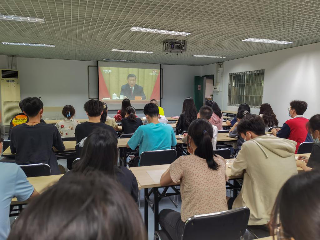 师生收看庆祝中国共产主义青年团成立100周年大会