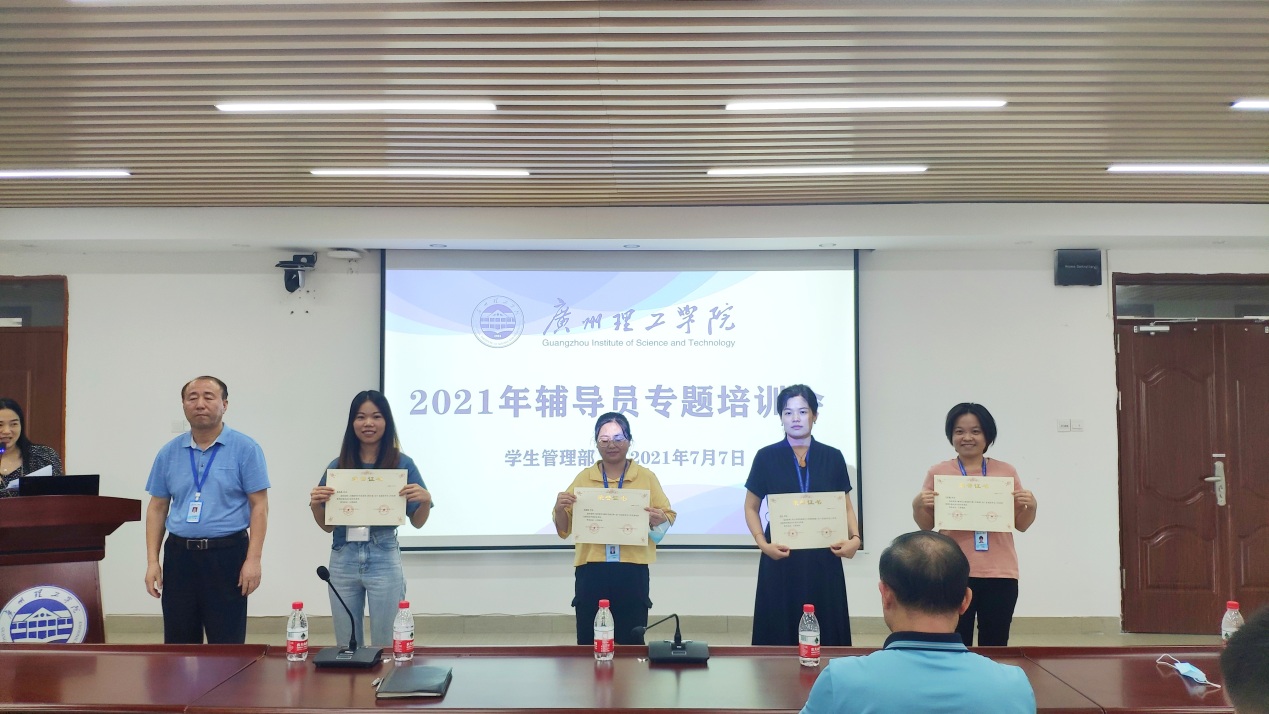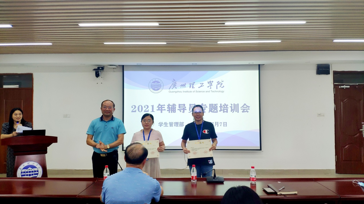 会上对公司在广东高校员工工作优秀案例征集活动中取得优秀成绩的辅导员和优秀公司进行了颁奖仪式,鼓励全体辅导员向他们学习,积极参加比赛,提升职业素养。