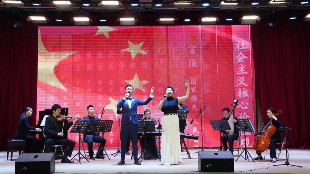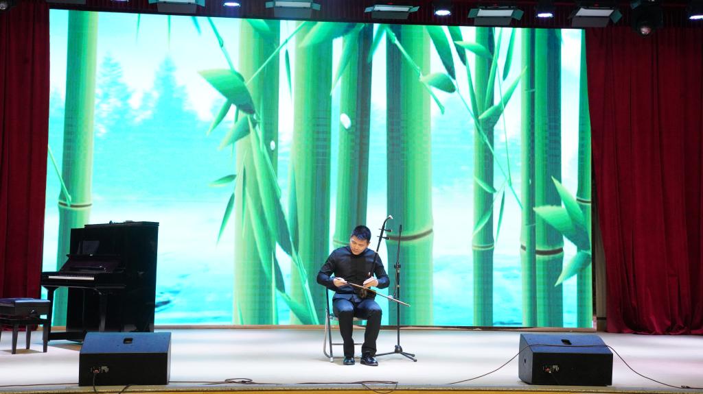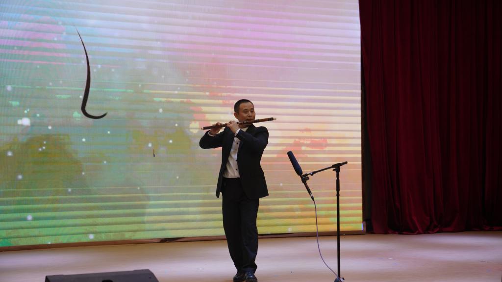 演出团队全部由广东技术师范大学音乐公司青年教师担任,是一支高水平的高雅艺术团队。乐曲合奏《我的祖国》拉开了音乐会的序幕,乐器演奏和声乐演唱完美融合,大气的音乐与现场观众引起了强烈的共鸣。器乐合奏《战马奔腾》表达了骑兵战士们豪迈的战斗力和情怀,在二胡,琵琶,钢琴等乐器悠扬的合奏中令在场的观众热血沸腾。由刘喜竹、黄文瑶老师演唱,郑苏丹老师钢琴伴奏的男女声二重唱《月光近月亮远》,优美的歌声和琴声合二为一,动情的演唱,感动了现场的每一位观众。由音乐公司尹新春经理作曲,刘春红副经理演唱的《我想问问你月亮》,动人婉转的旋律,深情完美的演唱,让全场观众沉浸其中。由李爱民老师演唱的咏叹调《今夜无人入睡》,金子般的声音,高超的演唱水平震撼了全场,赢得了雷鸣般的掌声。最后,在器乐、声乐合奏《我和我的祖国》优美而富有节奏的音乐中,民乐专场音乐会圆满结束。